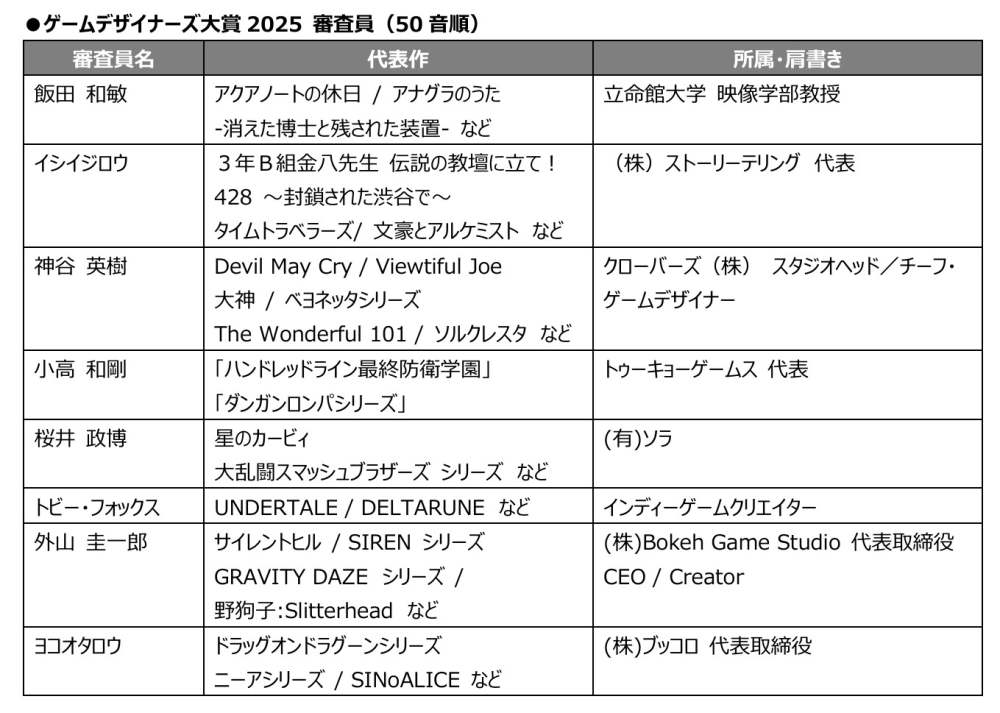 CESA公布日本游戏大奖2025详细情报及评委信息
