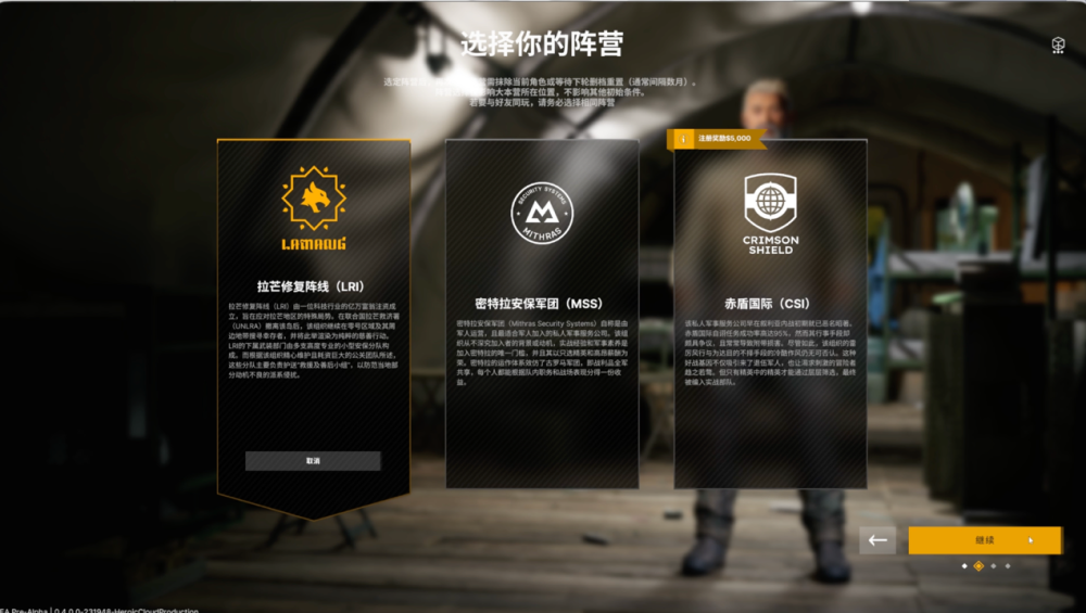 其一是阵营系统的引入。游戏提供了三个私人军事公司可供选择,每个派系拥有独特的行动基地和战略位置,且派系选择在服务器重置前是永久性的。这听起来更像是一款MMORPG的设计思路——玩家不是独狼或临时组队,而是归属到一个“阵营”中,与同阵营的盟友共同防御阵地、协同作战。