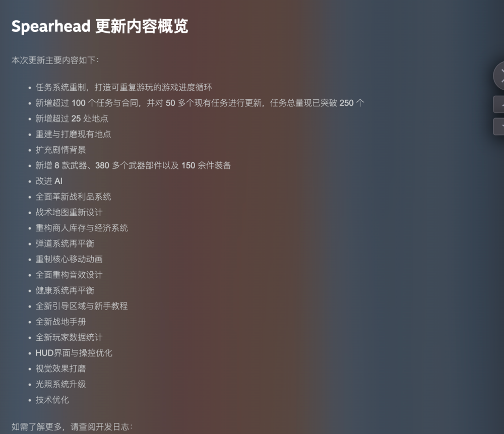 自抢先体验上线以来,性能问题一直是玩家差评的主要来源。优化一方面源于工作室本身的规模和时间成本,另一方面则在于游戏特别强调的“无缝开放世界”和优秀的场景建模。不过,近期的几次更新显示开发团队正在积极解决这些问题。玩家社区的反应也印证了优化的进展,自3月31日《灰区战争》0.4版本更新“Spearhead”上线后,近30天的Steam好评率达到了80%。、对于一款仍处于“非常早期开发阶段”的游戏而言,要在竞争激烈的撤离类射击市场中真正站稳脚跟,持续的打磨和内容更新不可或缺。